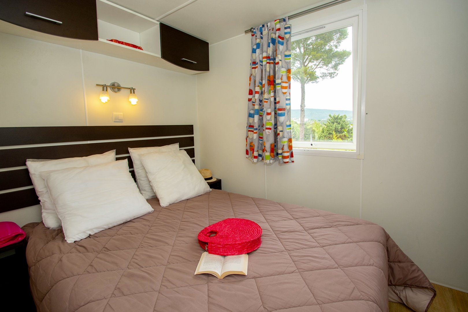 Kitchen with mod cons and a living area with a bench seat with pull-out bed (120 x 190 cm) and television
